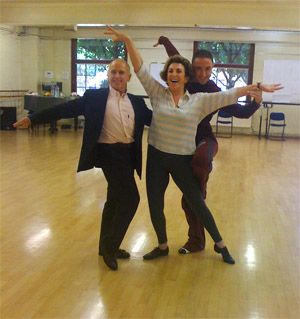 Edwina with dance partner Vincent Simone meeting the wonderful Wayne Sleep during practice.
